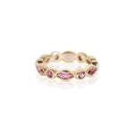 Set with vivid pink tourmaline, it radiates warmth, femininity, and joy. Gorgeous solo, but even more fun to stack — try it with our SHEL Rising Cigar Bands or Off to Paris Rings for a vibrant, layered look that’s unapologetically you.  Book a private bespoke appointment and order this ring in other shapes and Gems!