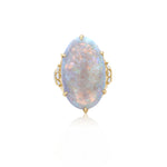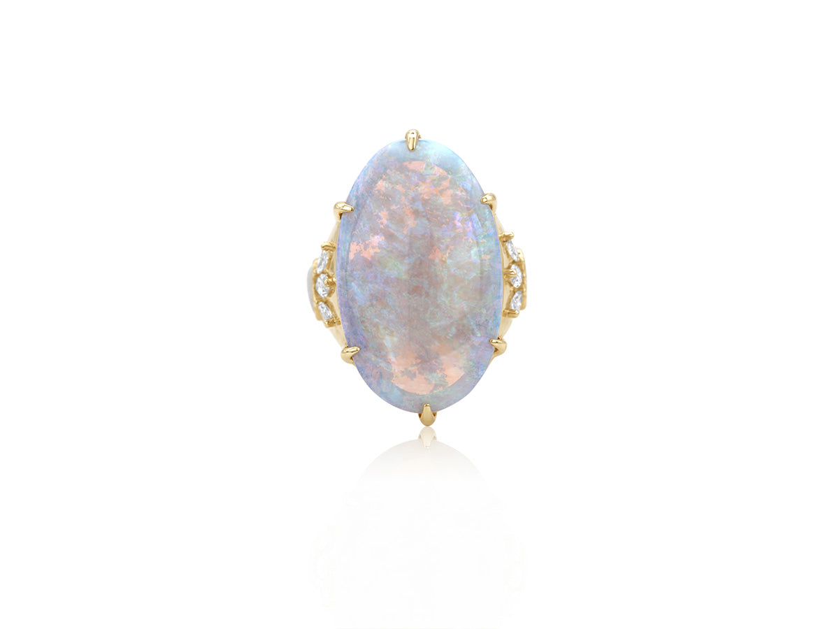 Inspired by one of SHEL'S most popular rings, the beloved Mama Pajaros Ring, the Ocean Love Opal Ring expresses the opalescent light of the sea with bold claw prongs and heart-shaped details. Each opal is individually sourced from Australia—no two are alike—making every ring one-of-a-kind. A true collector’s piece that supports coral restoration through the Ako‘Ako‘a initiative.